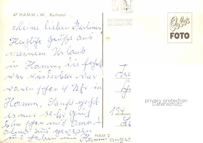 72904842 alte Postkarte Hamm Westfalen Kurhotel postalisch gelaufen Erhaltung siehe scans [AndreD76] KatCode: 11110005915000