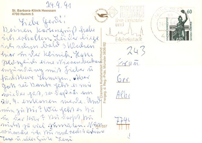 73934066 Hamm Westfalen St Barbara Klinik Heessen postalisch gelaufen Fliegeraufnahme Erhaltung siehe scans [WerneD78] Fliegeraufnahme alte Postkarte Wern Katcode 11110005915000
