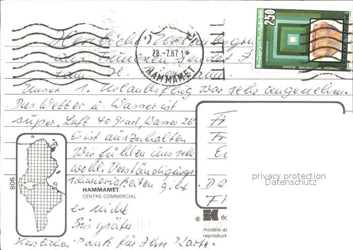 alte Postkarte Hammamet Centre Commercial postalisch gelaufen Erhaltung siehe scans