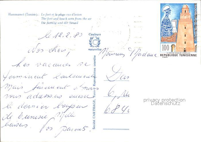 old postcard Hammamet Festung Strand postalisch gelaufen Erhaltung siehe scans