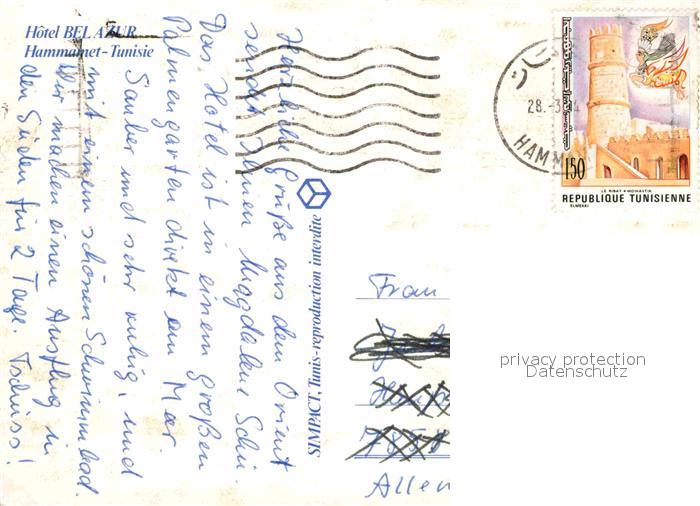 alte Postkarte Hammamet Hotel Bel Azur vue aerienne postalisch gelaufen Erhaltung siehe scans [FriedD77]