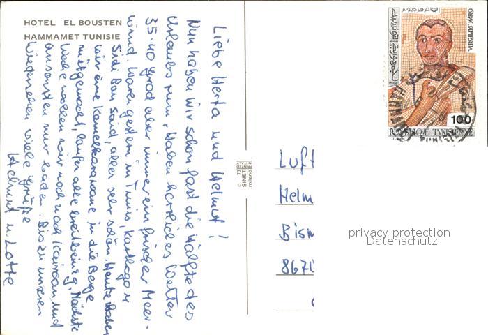 old postcard Hammamet Hotel Bousten postalisch gelaufen Erhaltung siehe scans