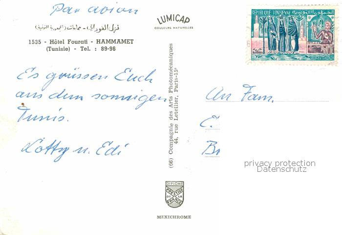 Hammamet Hotel Fourati postalisch nicht gelaufen Erhaltung siehe scans [WerneD78]