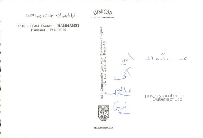 Hammamet Hotel Fourati postalisch nicht gelaufen Erhaltung siehe scans