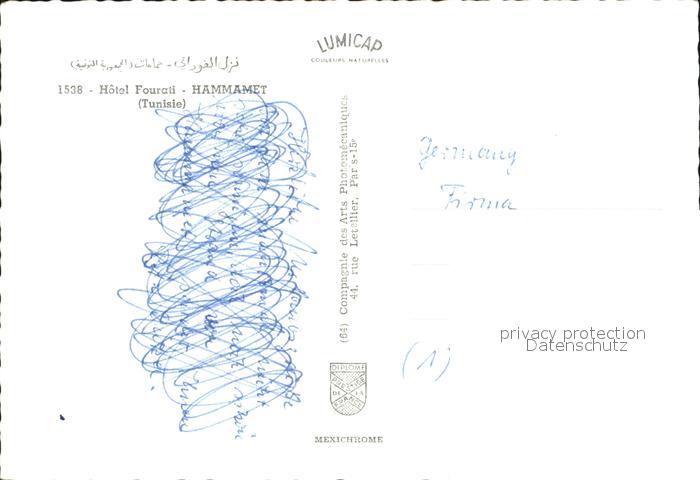 Hammamet Hotel Fourati postalisch nicht gelaufen Erhaltung siehe scans