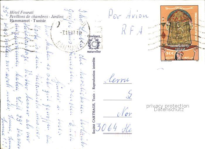 old postcard Hammamet Hotel Fourati Pavillons de chambres Jardins postalisch gelaufen Erhaltung siehe scans