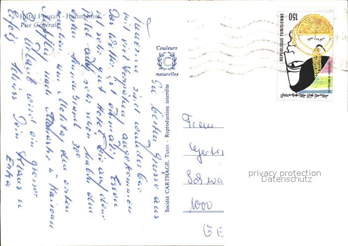alte Postkarte Hammamet Hotel Fourati Vue generale postalisch gelaufen Erhaltung siehe scans