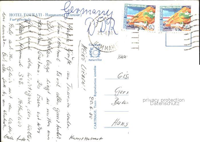 old postcard Hammamet Hotel Fourati Vue generale postalisch gelaufen Erhaltung siehe scans
