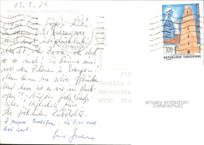 old postcard Hammamet Hotel Les Orangers postalisch gelaufen Erhaltung siehe scans