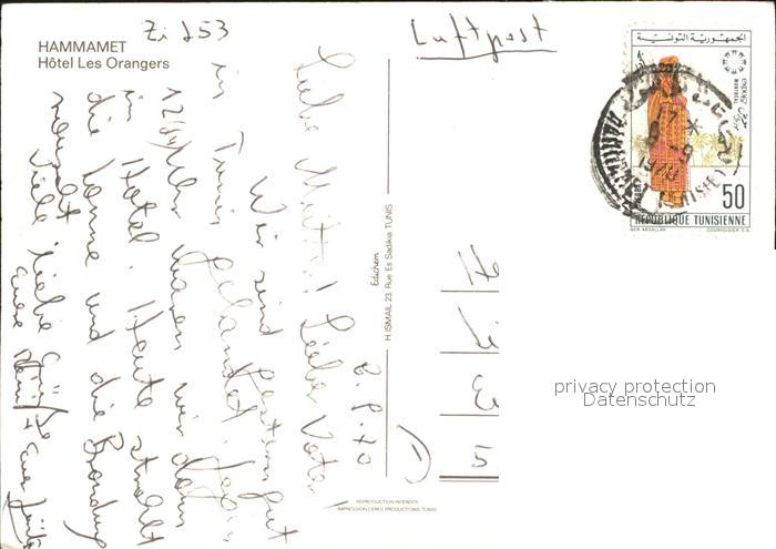 alte Postkarte Hammamet Hotel Les Orangers postalisch gelaufen Erhaltung siehe scans