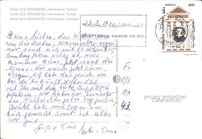 alte Postkarte Hammamet Hotel Les Orangers postalisch gelaufen Erhaltung siehe scans
