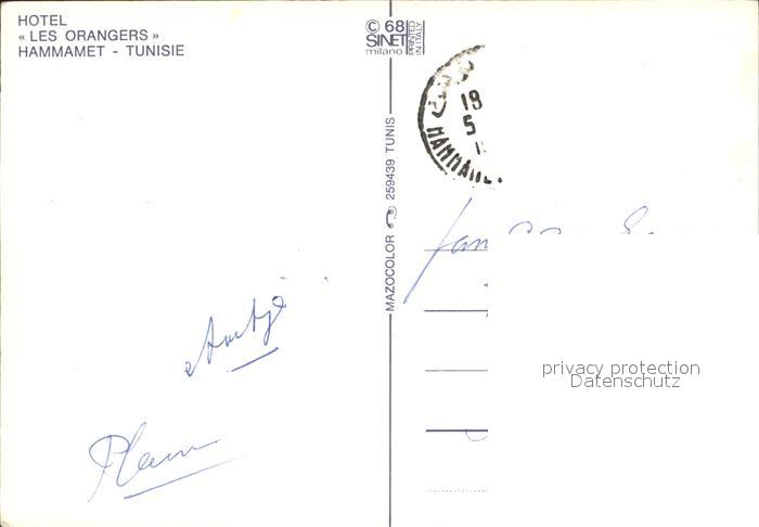 alte Postkarte Hammamet Hotel Les Orangers postalisch gelaufen Erhaltung siehe scans
