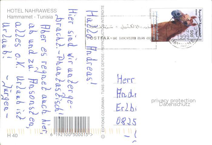alte Postkarte Hammamet Hotel Nahrawess Swimming Pool postalisch gelaufen Erhaltung siehe scans