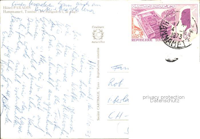 alte Postkarte Hammamet Hotel Paradis Les Bungalows La Plage postalisch gelaufen Erhaltung siehe scans