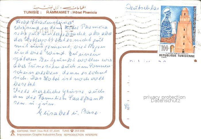 alte Postkarte Hammamet Hotel Phenicia postalisch gelaufen Erhaltung siehe scans