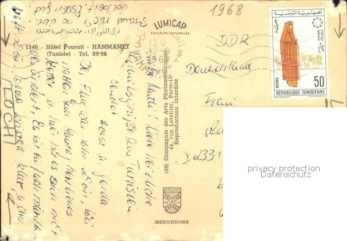 old postcard Hammamet Hotel Pourati postalisch gelaufen Erhaltung siehe scans [AndreD76 kt121box]