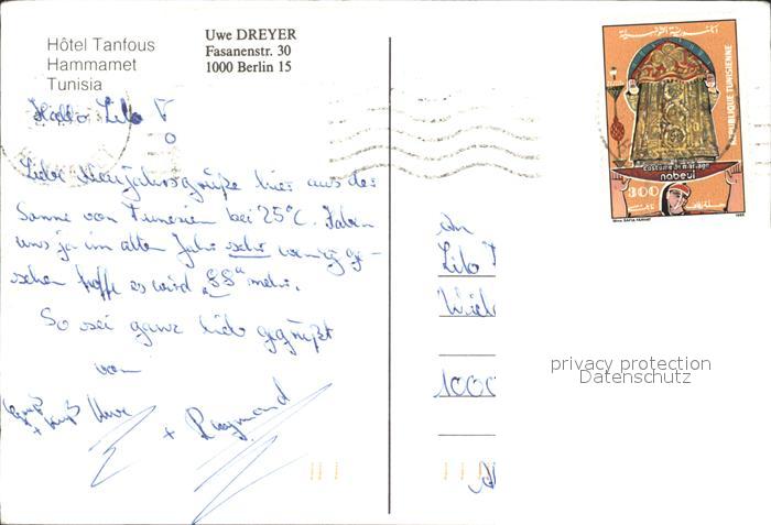 alte Postkarte Hammamet Hotel Tanfous postalisch gelaufen Erhaltung siehe scans