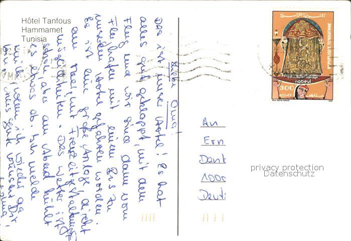 alte Postkarte Hammamet Hotle Tanfous postalisch gelaufen Erhaltung siehe scans