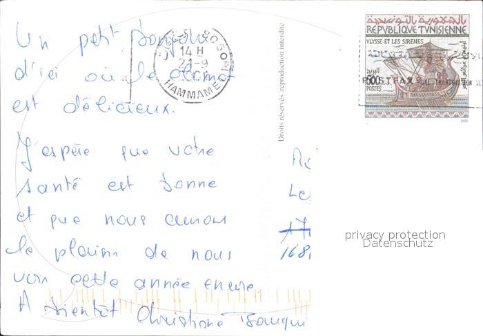 alte Postkarte Hammamet Strand und Ortspartie postalisch gelaufen Erhaltung siehe scans