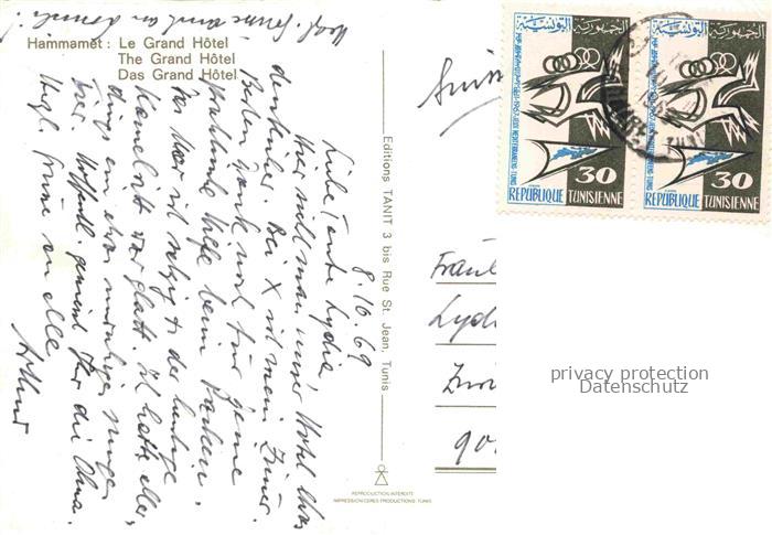 74096498 old postcard Hammamet Tunesie Grand Hotel postalisch gelaufen Erhaltung siehe scans [IrynaD87] KatCode: 18520