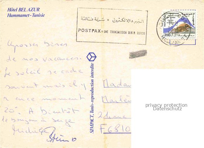 74015176 old postcard Hammamet Tunesie Hôtel Bel Azur Bar Jardin Piscine postalisch gelaufen Erhaltung siehe scans [FriedD77] KatCode: 18520