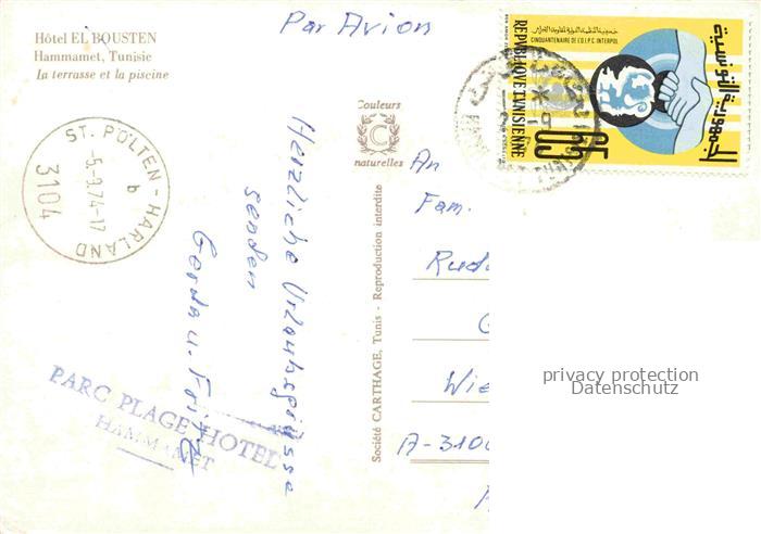74091739 old postcard Hammamet Tunesie Hotel El Bousten postalisch gelaufen Erhaltung siehe scans [IrynaD87] KatCode: 18520