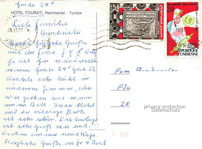 74091741 old postcard Hammamet Tunesie Hotel Fourati postalisch gelaufen Erhaltung siehe scans [IrynaD87] KatCode: 18520