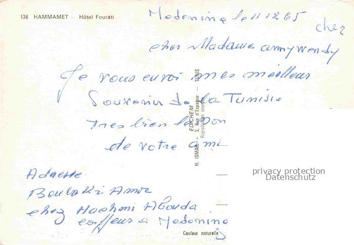 74091738 Hammamet Tunesie Hotel Fourati postalisch nicht gelaufen Erhaltung siehe scans [IrynaD87] KatCode: 18520