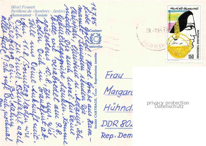 74044137 old postcard Hammamet Tunesie Hotel Fourati postalisch gelaufen Erhaltung siehe scans [WerneD78] KatCode: 18520