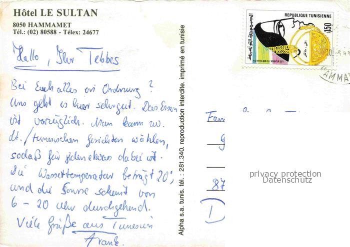 74092293 old postcard Hammamet Tunesie Hotel Le Sultan postalisch gelaufen Erhaltung siehe scans [IrynaD87] KatCode: 18520