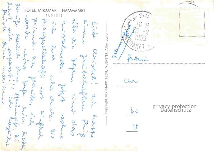 74022763 old postcard Hammamet Tunesie Hotel Miramar postalisch gelaufen Erhaltung siehe scans [FriedD77] KatCode: 18520