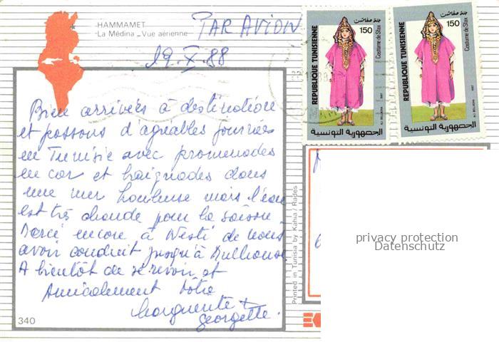 74015043 old postcard Hammamet Tunesie La Médina vue aérienne postalisch gelaufen Erhaltung siehe scans [FriedD77] KatCode: 18520