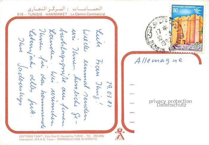 74010859 old postcard Hammamet Tunesie Le Centre Commercial Vue partielle postalisch gelaufen Erhaltung siehe scans [WerneD78] KatCode: 18520