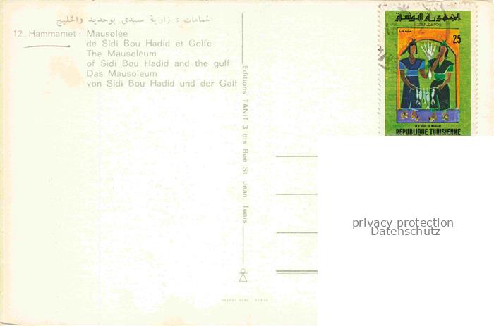 74010853 old postcard Hammamet Tunesie Mausolee de Sidi Bou Hadid et Golfe postalisch gelaufen Erhaltung siehe scans [WerneD78] KatCode: 18520