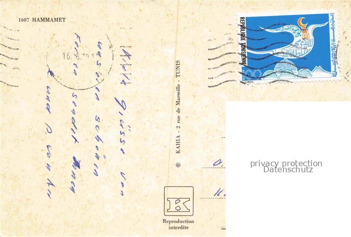 74096500 old postcard Hammamet Tunesie Strandansicht Luftbild postalisch gelaufen Erhaltung siehe scans [IrynaD87] KatCode: 18520