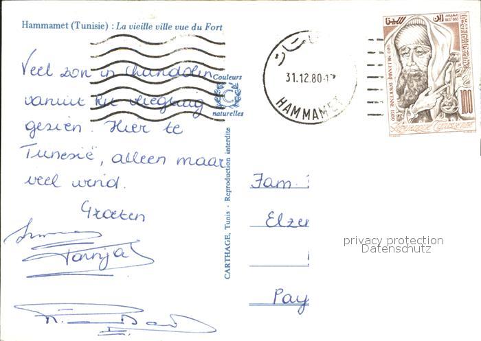 alte Postkarte Hammamet Vieille Ville vue du Fort postalisch gelaufen Erhaltung siehe scans [LiesaD40]