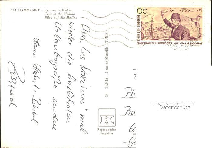 alte Postkarte Hammamet Vue aerienne sur la Medina postalisch gelaufen Erhaltung siehe scans