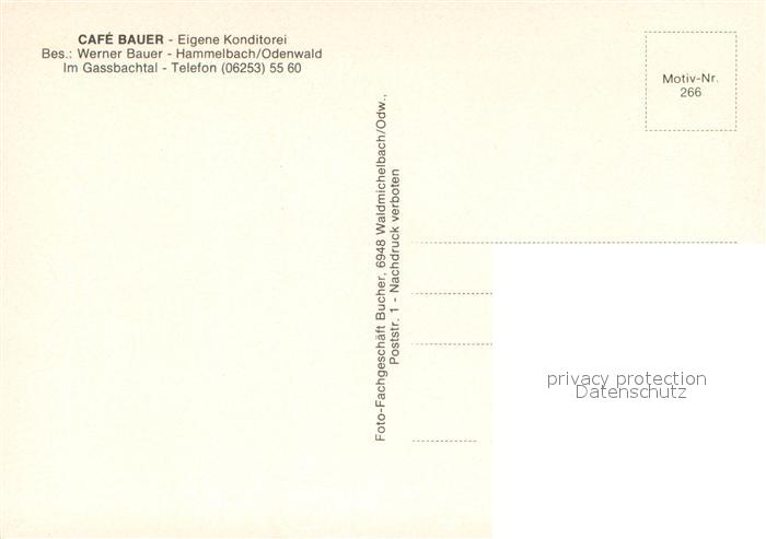 73722267 Hammelbach Cafe Bauer Odenwald postalisch nicht gelaufen Erhaltung siehe scans [LiesaD40] KatCode: 11110006431009