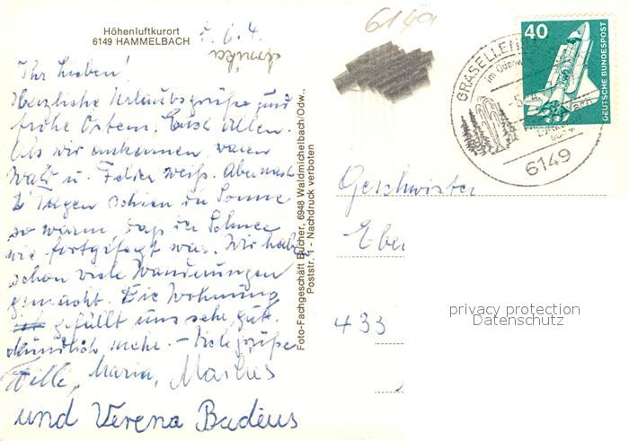 73021645 alte Postkarte Hammelbach Panorama Rathaus Textilhaus Jochum Strasse postalisch gelaufen Erhaltung siehe scans [WerneD78] KatCode: 11110006431009