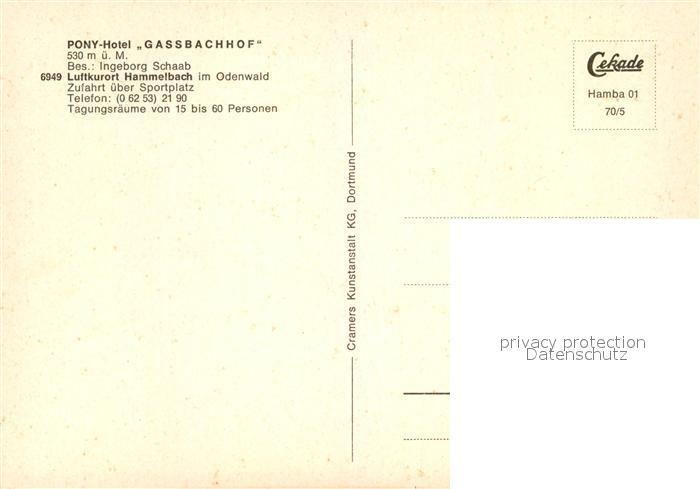 73171610 Hammelbach Pony-Hotel Gassbachhof postalisch nicht gelaufen Erhaltung siehe scans [PaolaD17] KatCode: 11110006431009