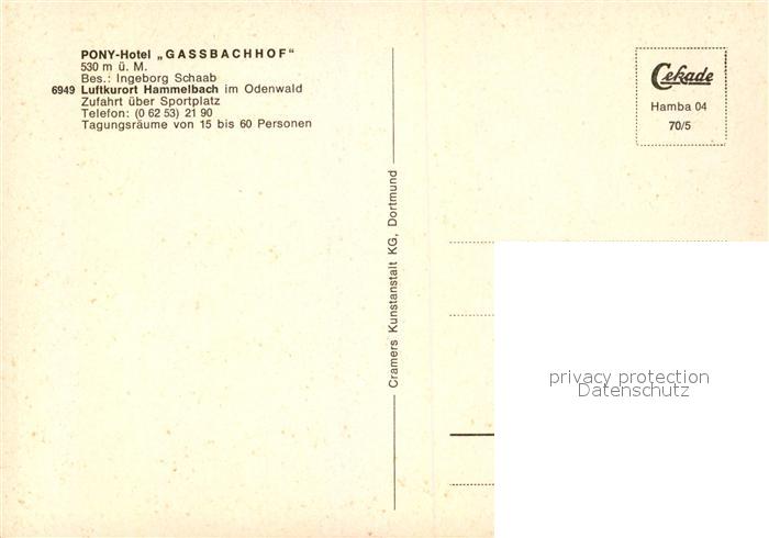 73170607 Hammelbach Pony-Hotel Gassbachhof postalisch nicht gelaufen Erhaltung siehe scans [PaolaD17] KatCode: 11110006431009