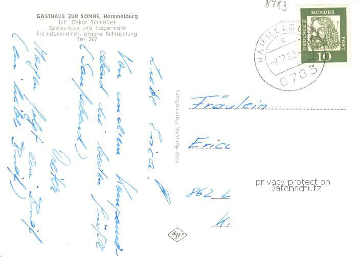 73854178 alte Postkarte Hammelburg Gasthaus zur Sonne Gastraeume postalisch gelaufen Erhaltung siehe scans [WerneD78] KatCode: 11110009672127