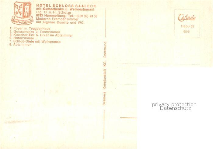 73720645 Hammelburg Hotel Schloss Saaleck Gutsschenke Weinrestaurant postalisch nicht gelaufen Erhaltung siehe scans [FriedD77] KatCode: 11110009672127