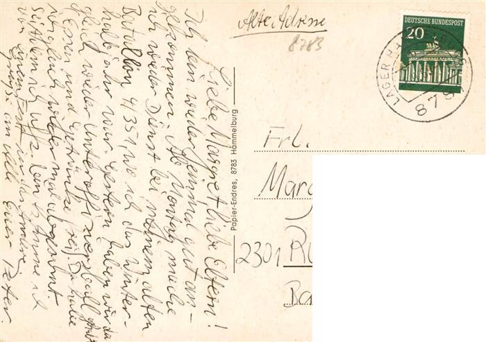 73914687 alte Postkarte Hammelburg Kloster Altstad Panorama Volksschule Marktplatz Rotes Schloss Bahnhofstrasse Schloss Saaleck postalisch gelaufen Erhaltung siehe scans [WerneD78] KatCode: 11110009672127
