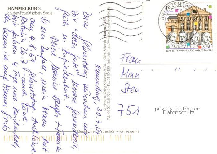 73175931 alte Postkarte Hammelburg Rotes Schloss Stadtpfarrkirche Herrenmuehle postalisch gelaufen Erhaltung siehe scans [PaolaD17] KatCode: 11110009672127