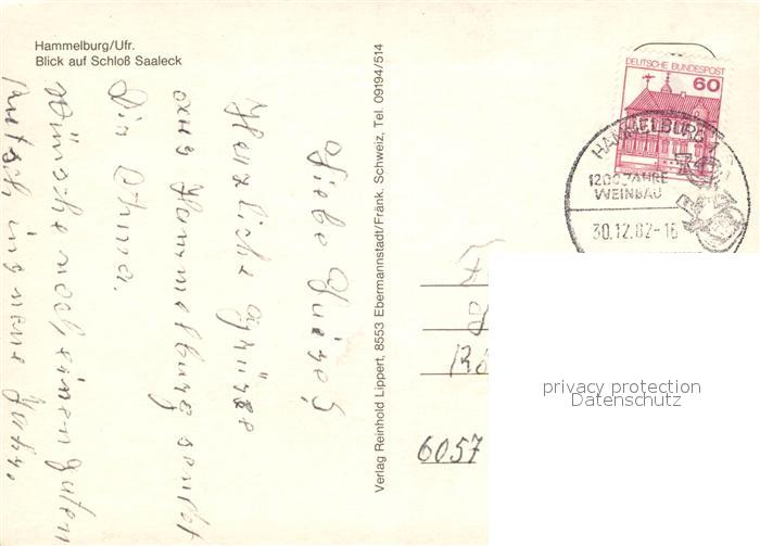 73271116 alte Postkarte Hammelburg Schloss Saaleck postalisch gelaufen Erhaltung siehe scans [WerneD78] KatCode: 11110009672127