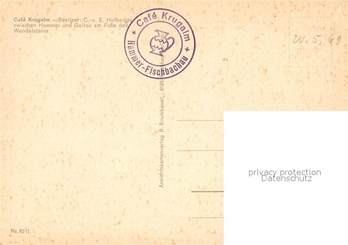 73313240 Hammer Fischbachau Cafe Krugalm postalisch nicht gelaufen Erhaltung siehe scans [NatalD47] KatCode: 11110009182114