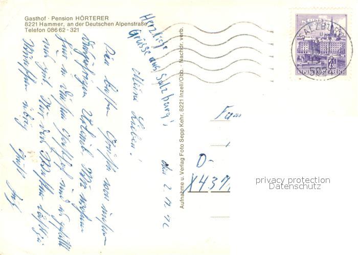 73643580 alte Postkarte Hammer Inzell Gasthof Pension Hoerterer postalisch gelaufen Erhaltung siehe scans [WerneD78] KatCode: 11110009189124