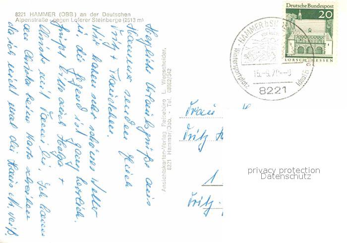 72686441 alte Postkarte Hammer Siegsdorf an der Deutschen Alpenstrasse gegen Loferer Steinberge postalisch gelaufen Erhaltung siehe scans [FriedD77] KatCode: 11110009189145