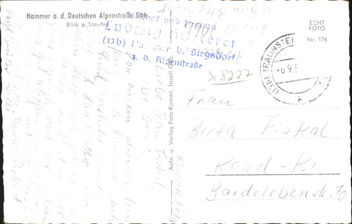 70941236 alte Postkarte Hammer Siegsdorf Deutsche Alpenstrasse Staufen postalisch gelaufen KatCode: 11110009189145